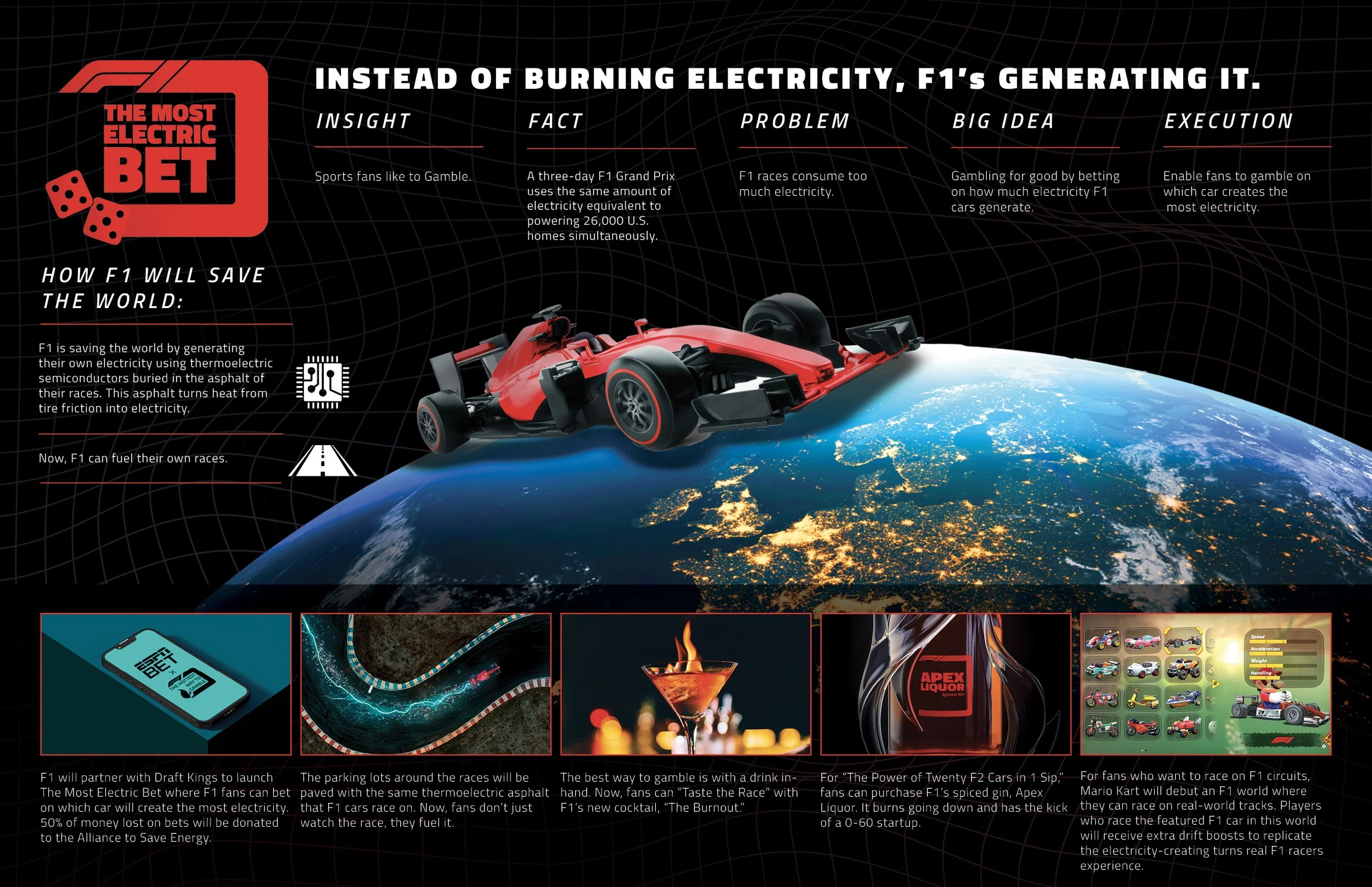 Big Idea: Gambling for good by betting on how much electricity F1 cars generate.
